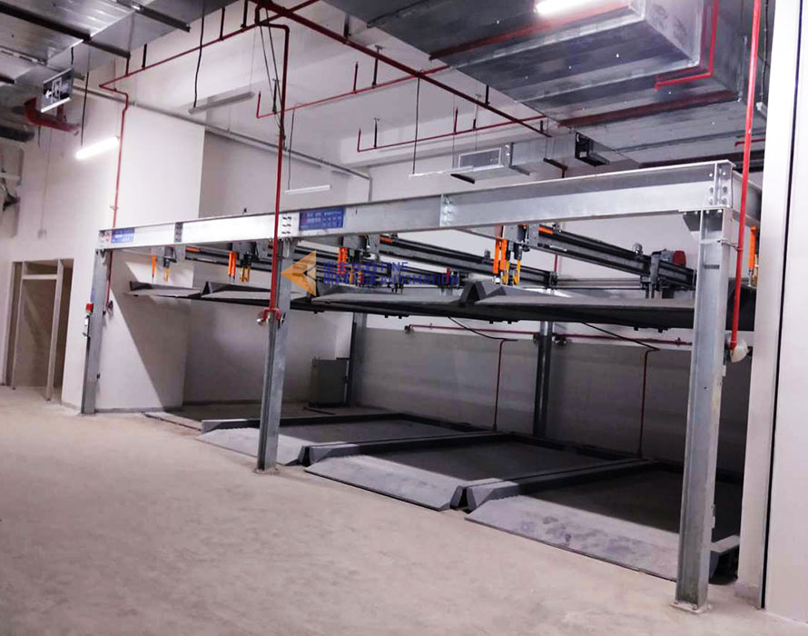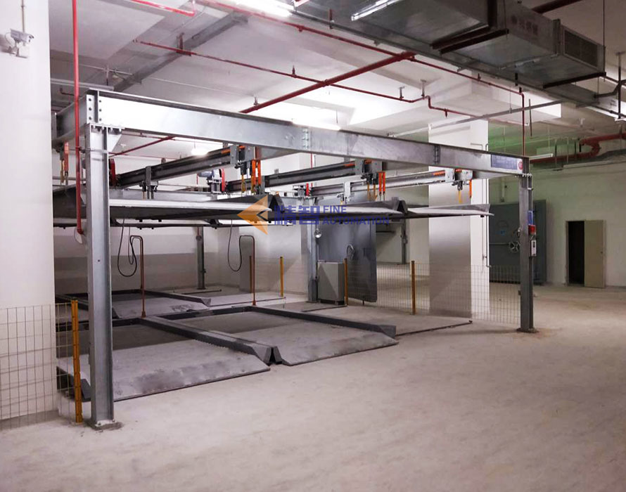 二、地下室復(fù)式車庫(kù):針對(duì)停車場(chǎng)層高、地形的因素,分別采用了二層升降橫移類、簡(jiǎn)易升降類、地坑式升降橫移類三種形式機(jī)械設(shè)備,共提供機(jī)械車位891個(gè),在降低土建成本的同時(shí)提供了更多的車位數(shù)。